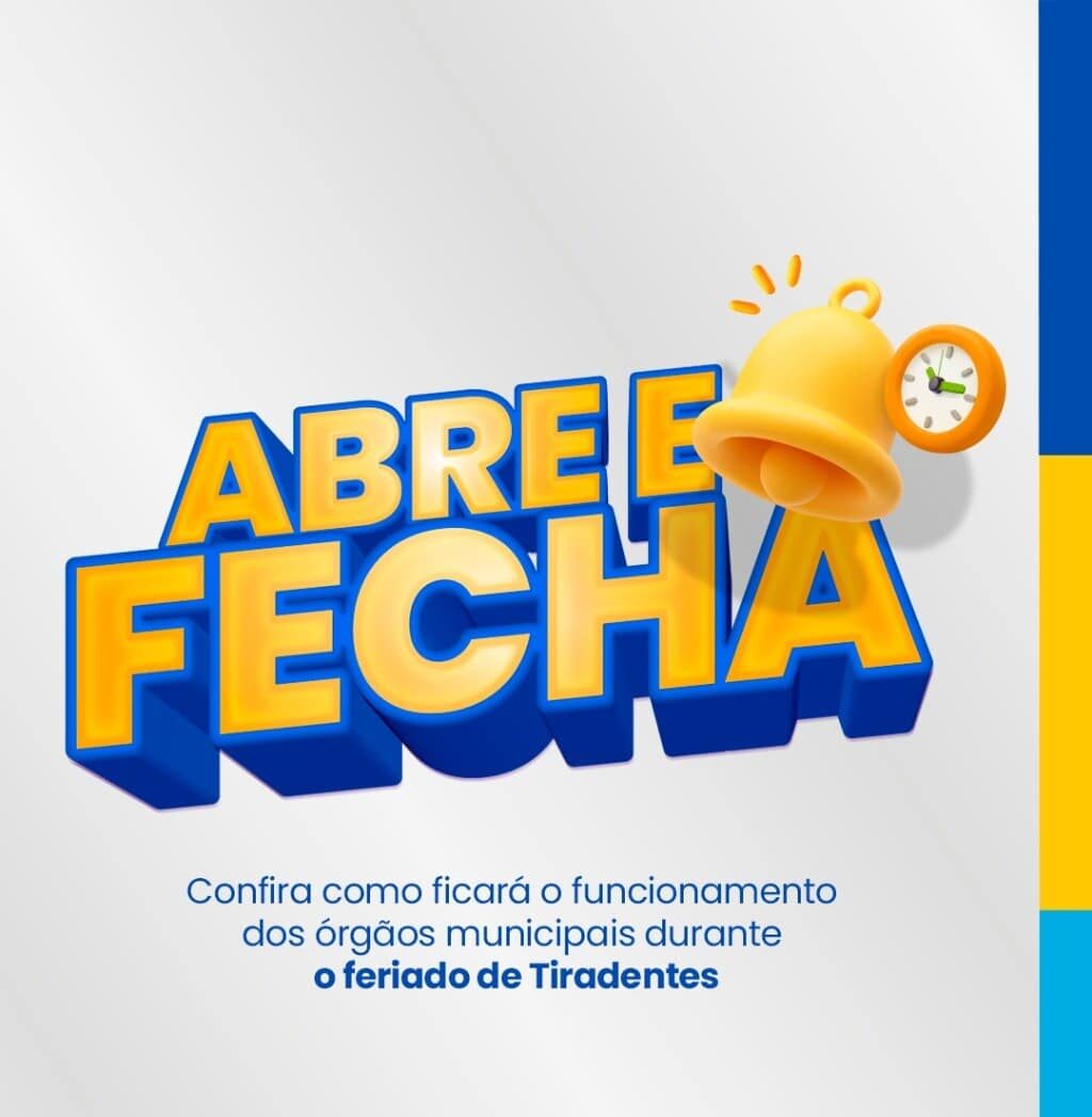 Confira como ficará o funcionamento dos órgãos municipais durante o feriado prolongado de Tiradentes.