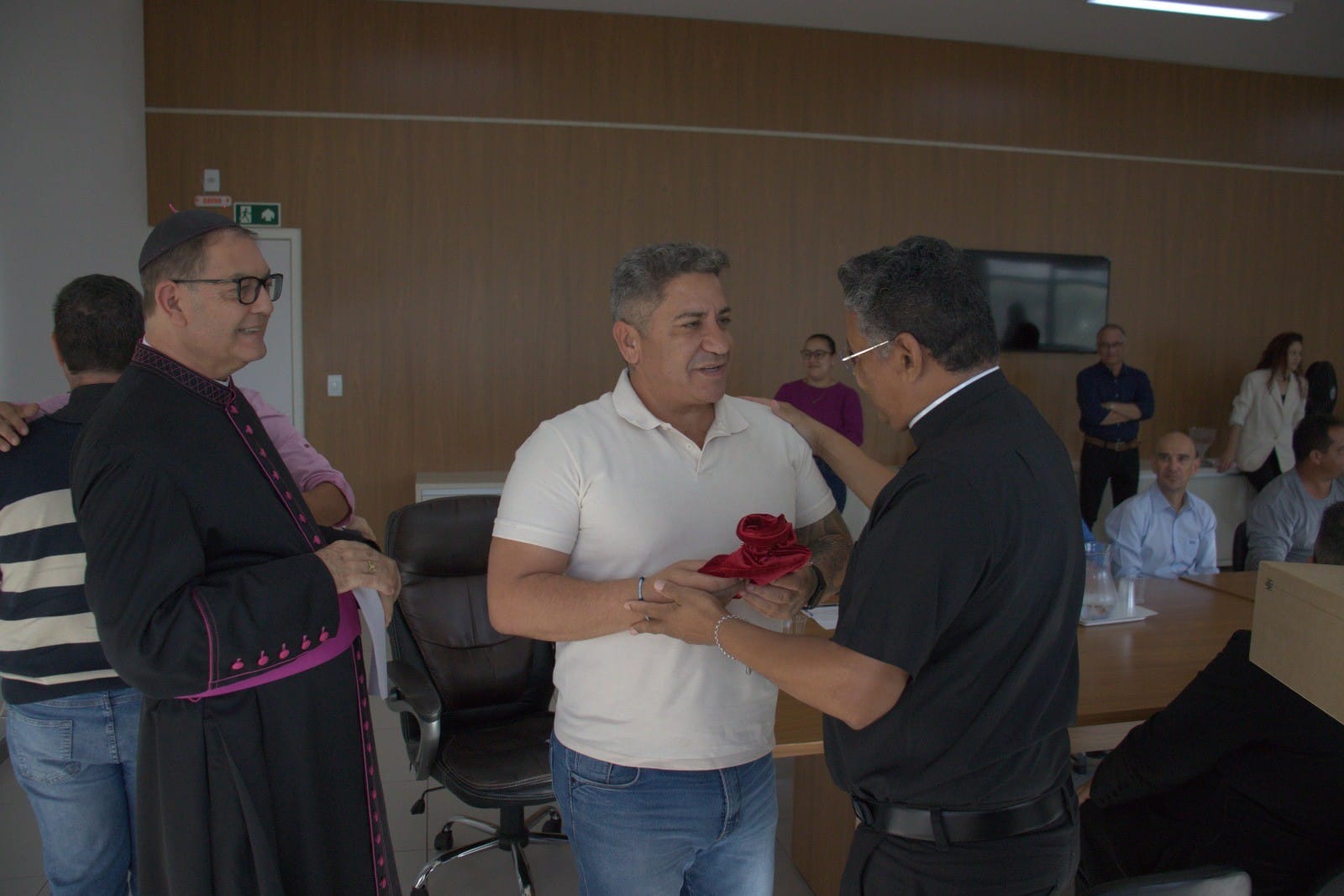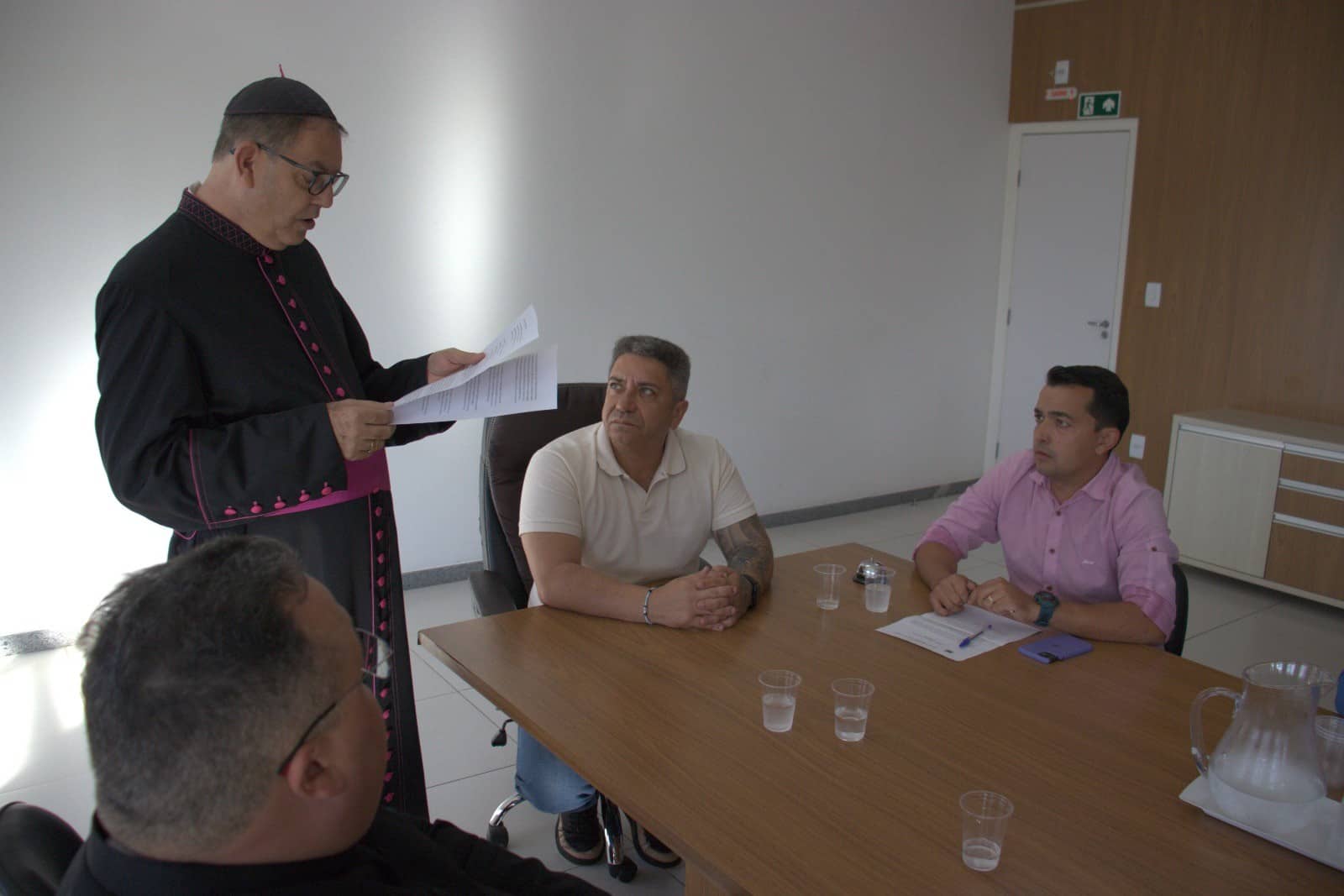 Ao receber o documento, o prefeito Robson Magela agradeceu a visita e reforçou a importância de construir uma cidade mais acolhedora e fraterna, com base em valores que unem fé, comunidade e compromisso com o bem comum.