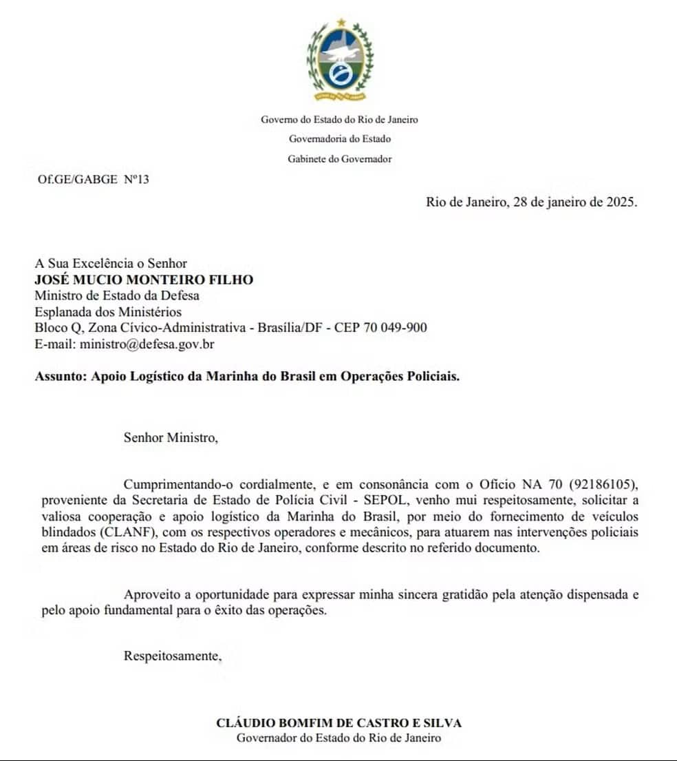 Por isso, segundo o governador, “não foram pedidas forças federais desta vez”. Castro negou que a cobrança seja pautada por uma briga política e afirma que é um pedido de ajuda.