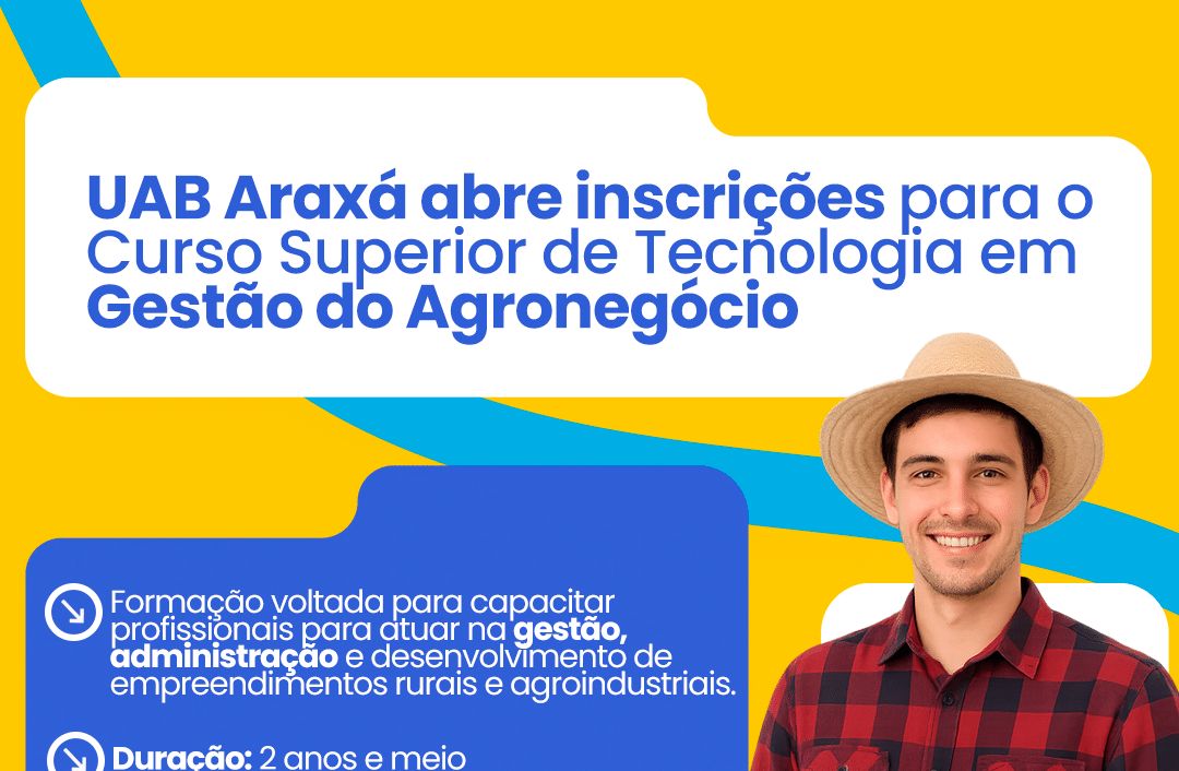 O curso, com duração de dois anos e meio, é voltado à capacitação de profissionais aptos a atuar na administração, gestão e desenvolvimento de empreendimentos rurais e agroindustriais, estimulando práticas sustentáveis, inovação e fortalecimento econômico da atividade agrícola, uma das bases produtivas mais importantes da região. Ao todo, o edital disponibiliza 150 vagas, sendo 15 destinadas ao Polo Araxá, e todas são abertas ao público em geral. Não há cobrança de taxa de inscrição.