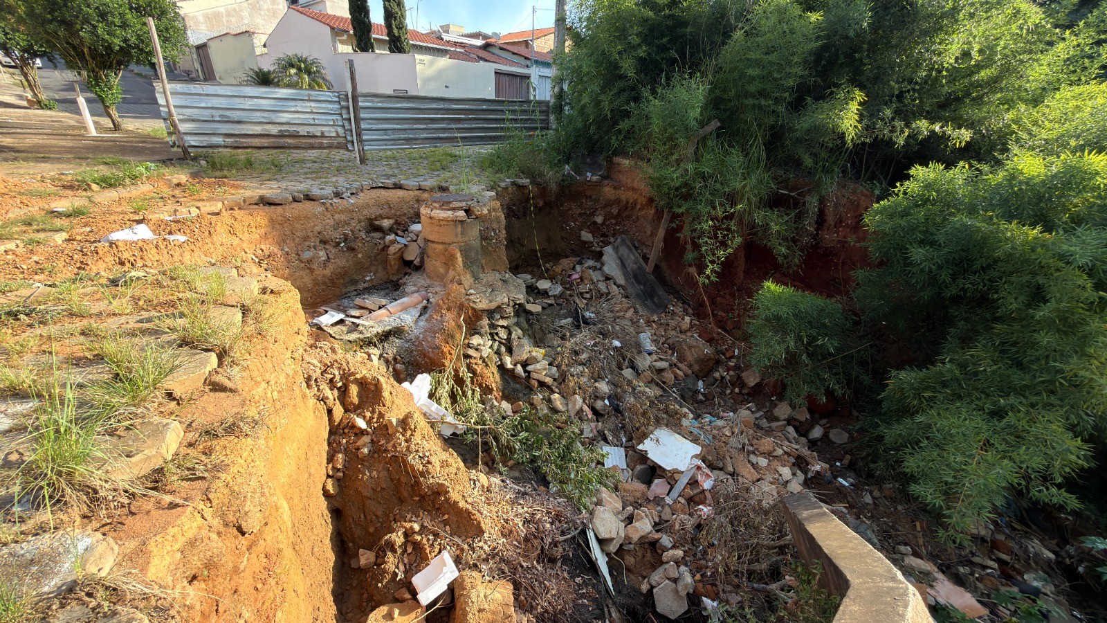 De acordo com o secretário municipal de Obras, Gustavo Lima, a situação é consequência da insuficiência do sistema de drenagem existente. “No local não havia captação adequada da água da chuva, o que sempre provocava erosões, principalmente em períodos chuvosos. Como é o ponto mais baixo do bairro, toda a água acaba se concentrando ali. Desta vez, o problema se agravou e houve o desmoronamento de parte da estrutura”, explicou.