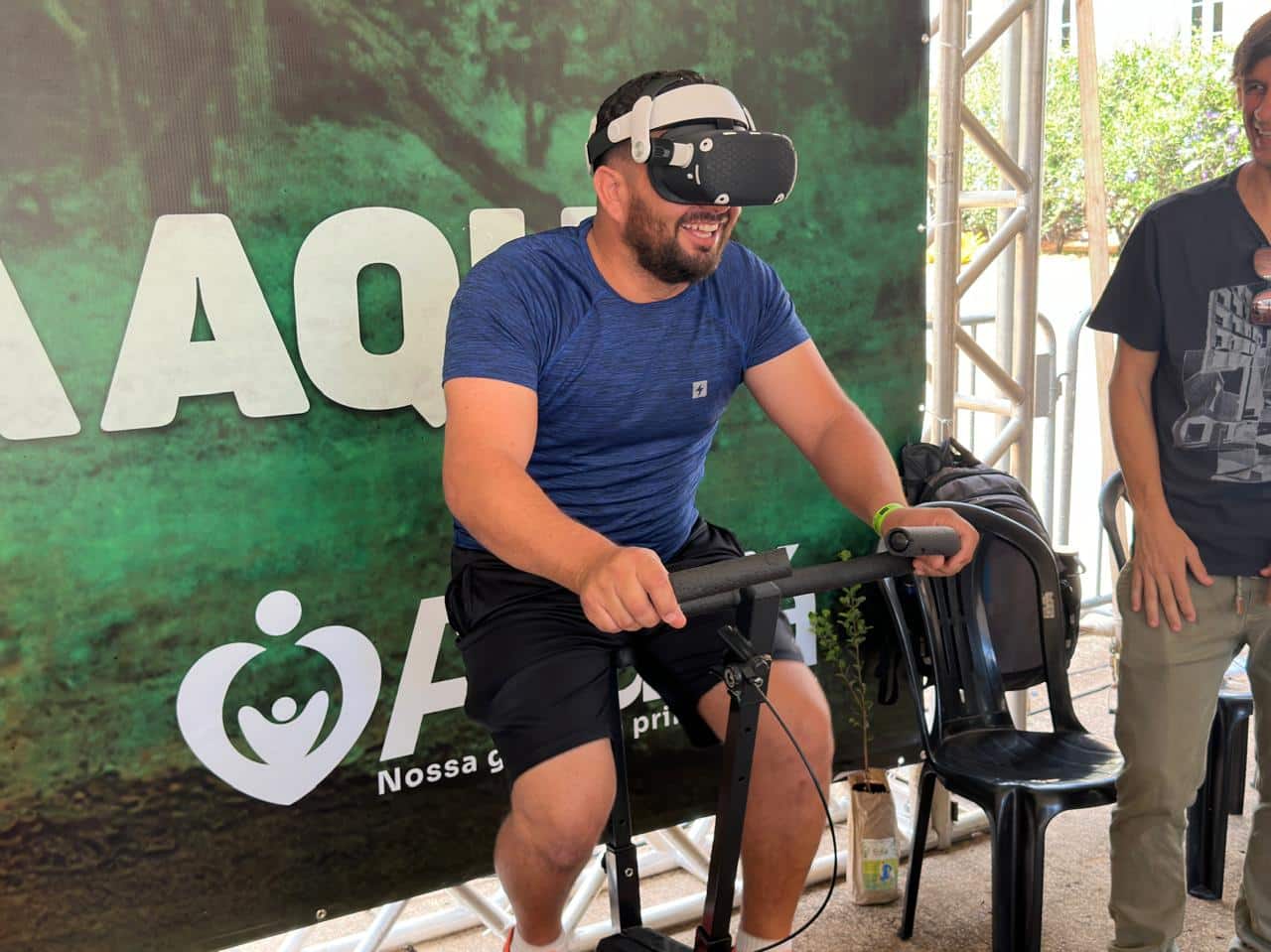 Um dos destaques é o simulador de bike 360 graus, que transporta os visitantes para dentro da icônica pista do Barreiro, onde acontecem as provas do Mountain Bike. A tecnologia oferece uma imersão realista, ideal para quem quer sentir na pele a emoção de pedalar em um dos percursos realizados pelos maiores atletas do mundo.