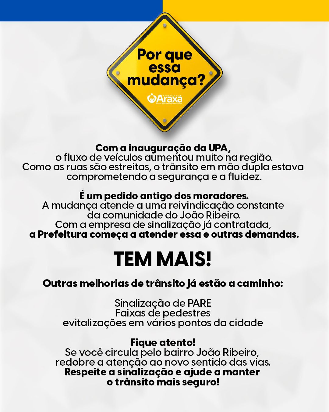 A secretária Naiara Pacheco destaca que a medida atende uma reivindicação constante dos moradores do bairro João Ribeiro. “Estamos atentos às necessidades da comunidade, à legislação e às melhorias para aumentar a segurança do nosso trânsito. Já tínhamos anunciado a realização dessa mudança, mas dependíamos de licitação. Agora que temos uma empresa contratada para executar o serviço, essa e outras demandas da comunidade ligadas às questões de sinalização serão atendidas”, reforça Naiara.
