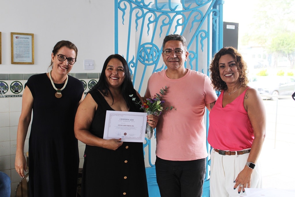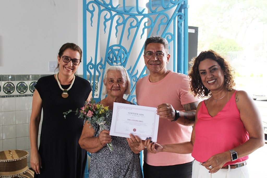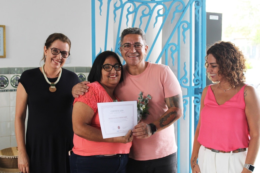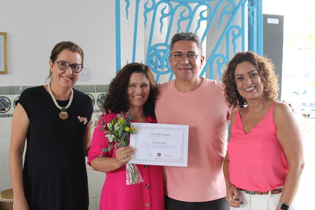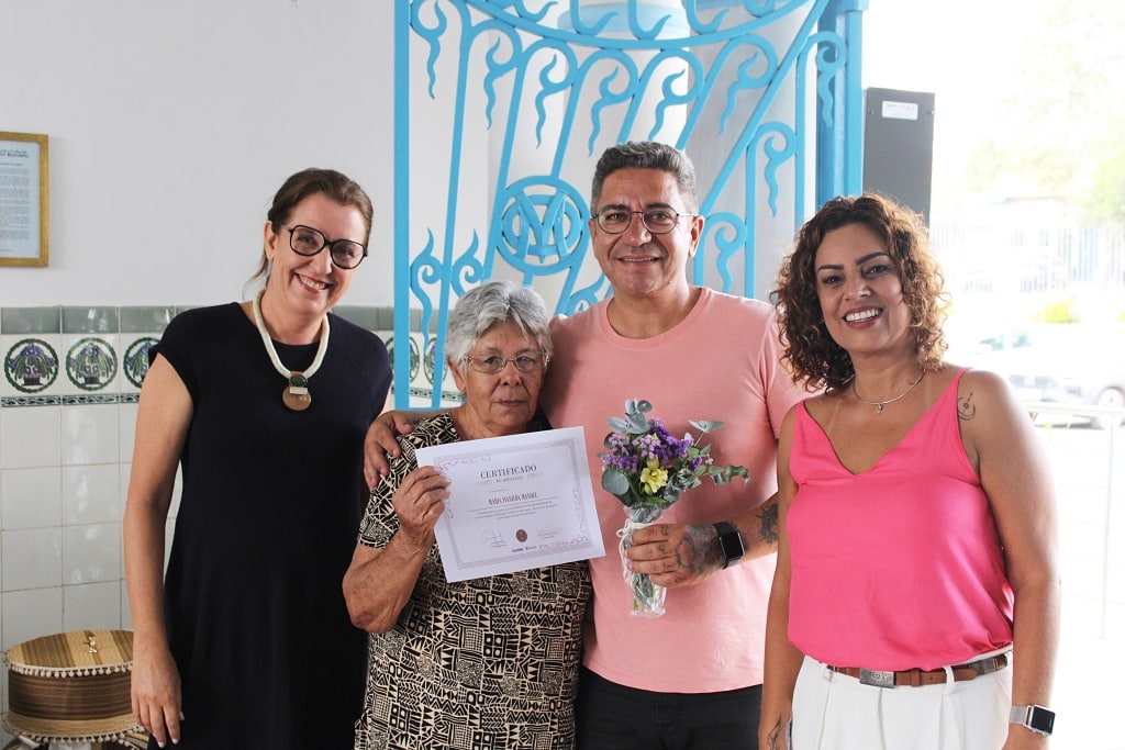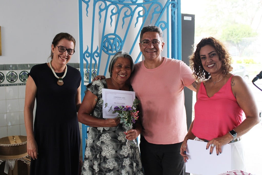 Estiveram presentes ainda a presidente da FCCB, Cynthia Verçosa, a coordenadora do Ateliê de Tecelagem, Adelina Menezes, familiares das tecelãs homenageadas, funcionários da FCCB e demais convidados.