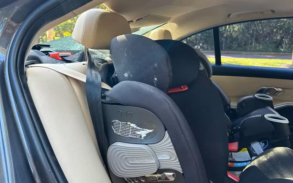 Cadeirinha da filha da condutora é atingida por estilhaços em ataque de touro em Ribeirão Preto, SP